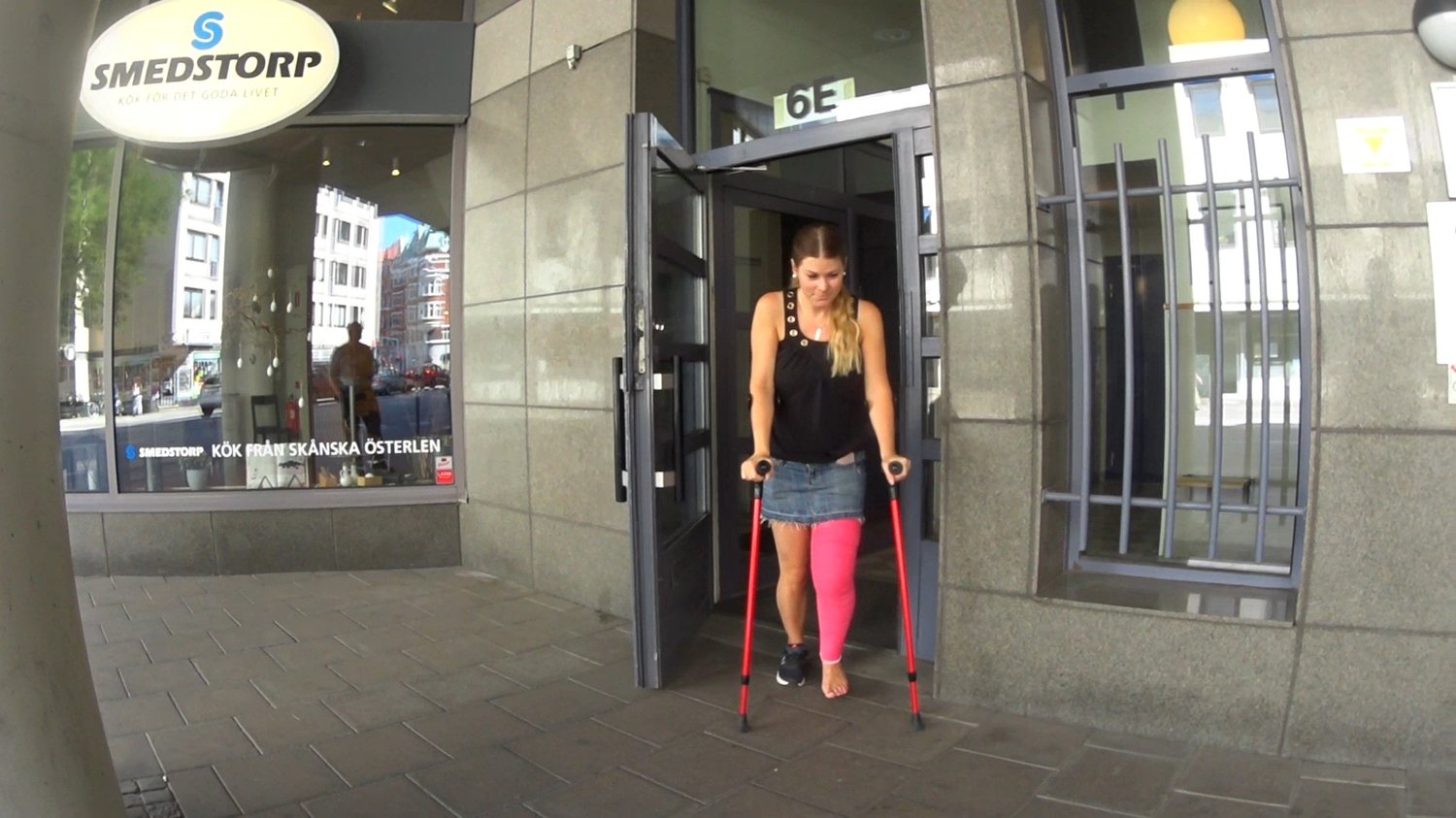We wait outside for Ice when she is leaving her friends house.Ice is crossing the street and crutch direct to the car this time.On her way home Ice has taken the roll as camerawoman and is now filming her cylinder leg cast and her toes when we are on our way to next location.