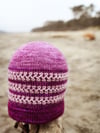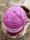 The hat comes in eight sizes (everything from an 80 stitch cast on to a 136 stitch cast on) and is written for seven gauges (from four to seven stitches per inch in half stitch increments). That means you can use just about any weight of yarn from fingering up through bulky, and there will be a size to fit pretty much anyone's head. Basically anything that will give you a smooth, even fabric with a drape you like somewhere in that range of gauges will work.