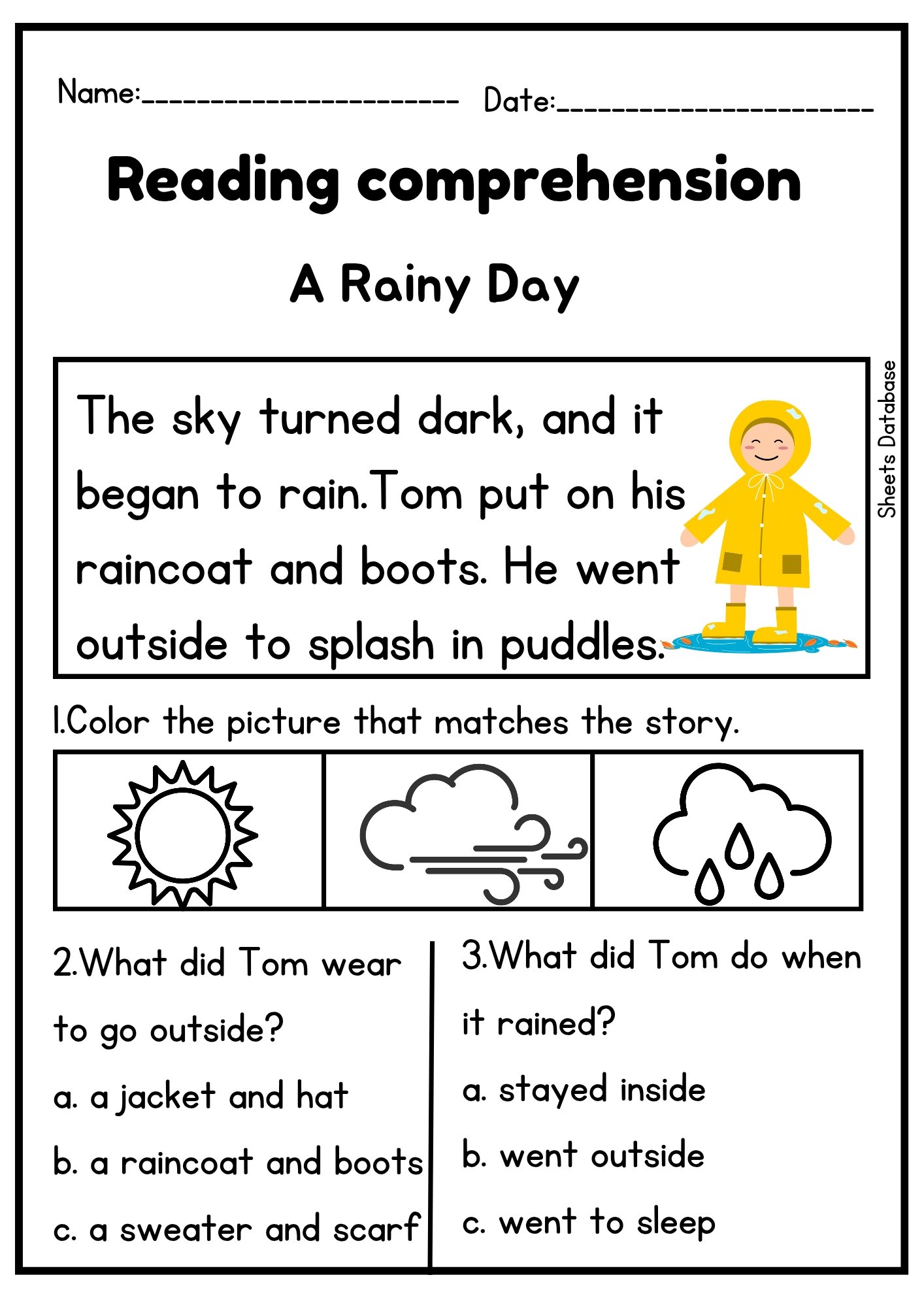 The PDF includes short, simple stories followed by multiple-choice questions and picture activities that improve understanding, vocabulary, and early reading skills.