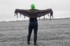 Greetings, Earthlings! The Beam Me Up shawl, shaped to look like one of those unidentified flying objects, is a tribute to every low-budget sci-fi cinematic experience ever made from The Day the Earth Stood Still to Star Trek: The Original Series. While most crescent shaped shawls are blocked to smooth out the top “bump”, this one is left in place to create a shawl collar, lending to it’s alien spaceship shape. Built with alternating sections of garter stripes and two-color brioche, this reversible shawl is sure to provide an unearthly knitting experience.