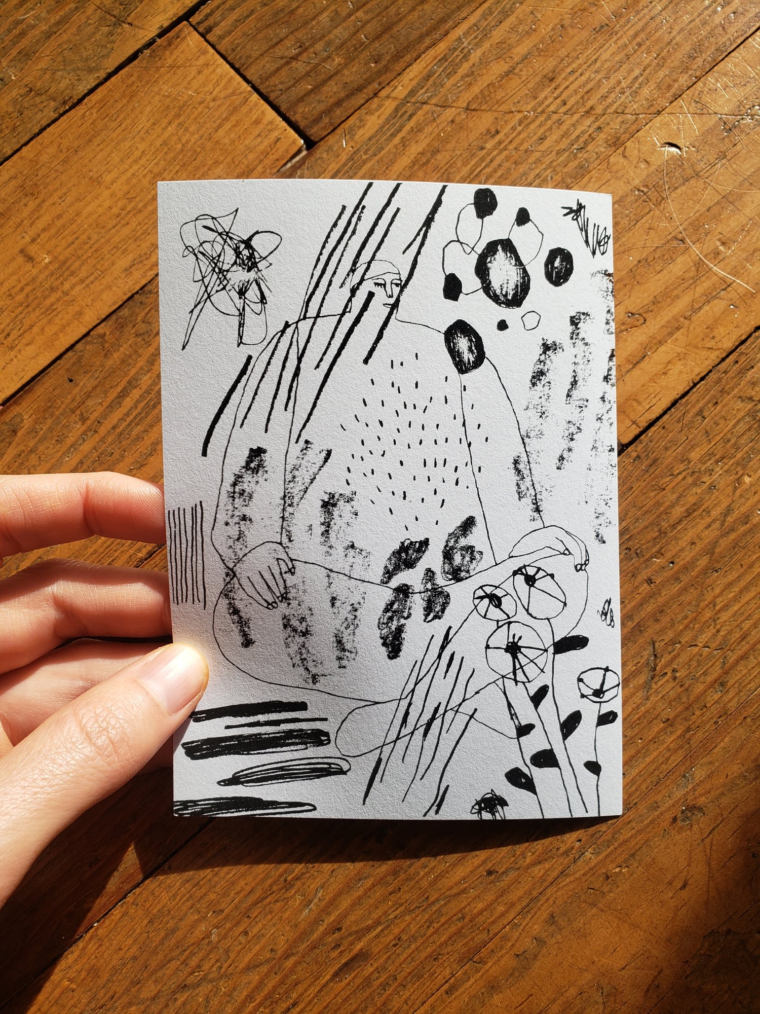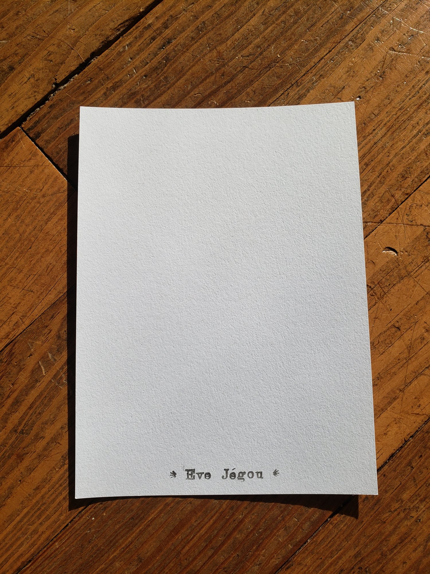 Format 10x13,5 cm - Noir et blanc sur papier recyclé 160 gr/m2