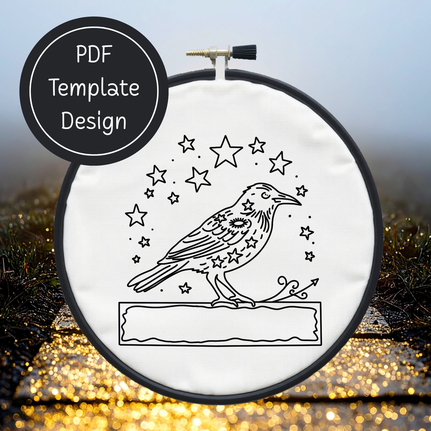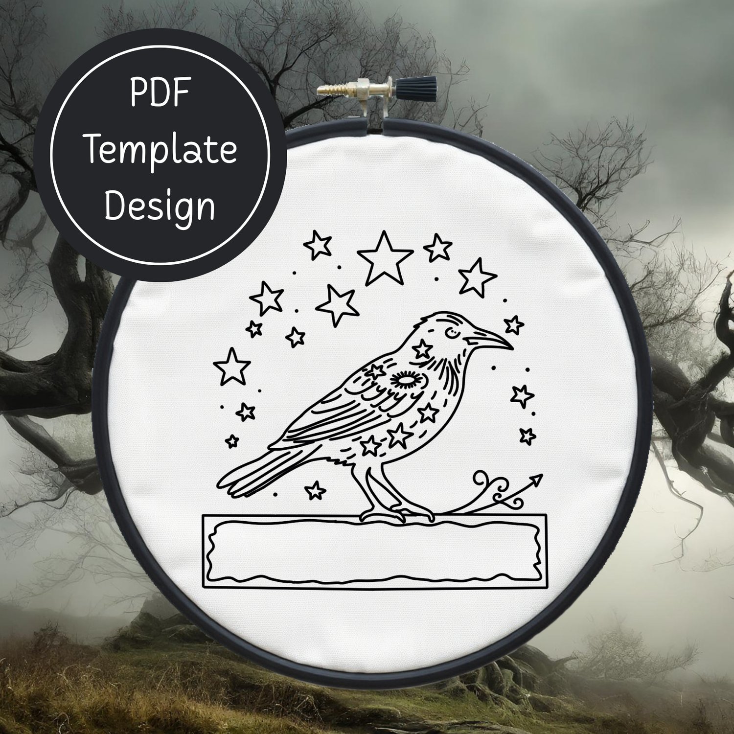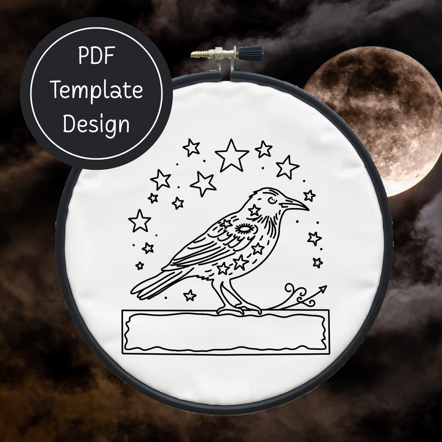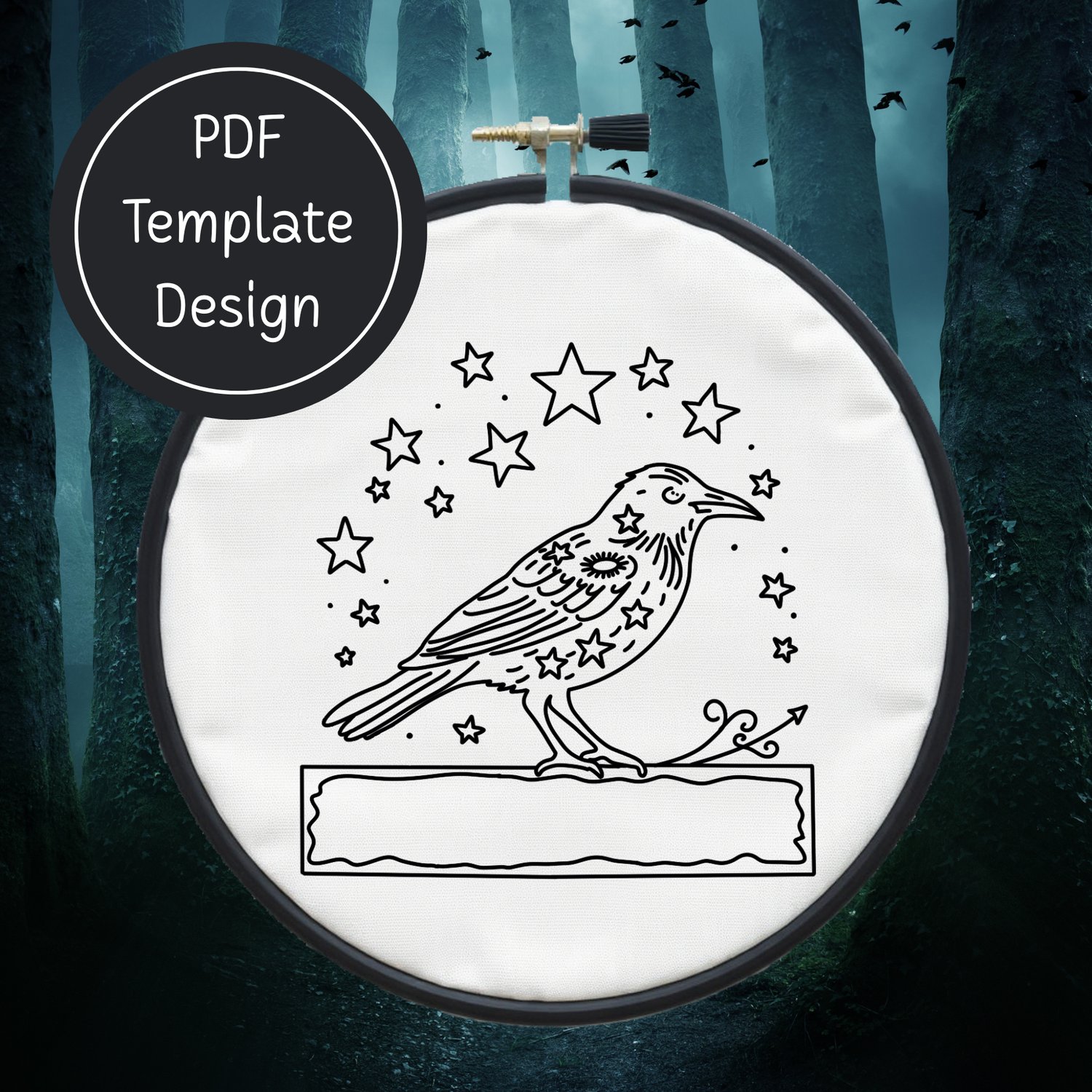 Crow & Stars Hand Embroidery Template PDF - DIY Bird Design For Hand Stitching - Instant Download