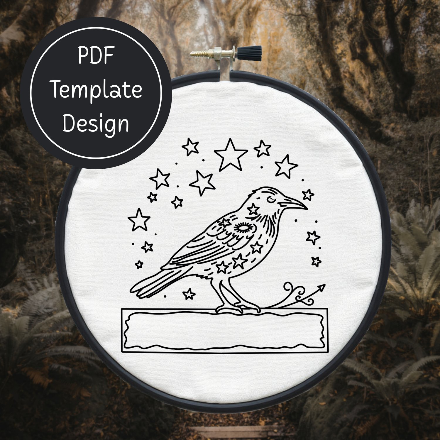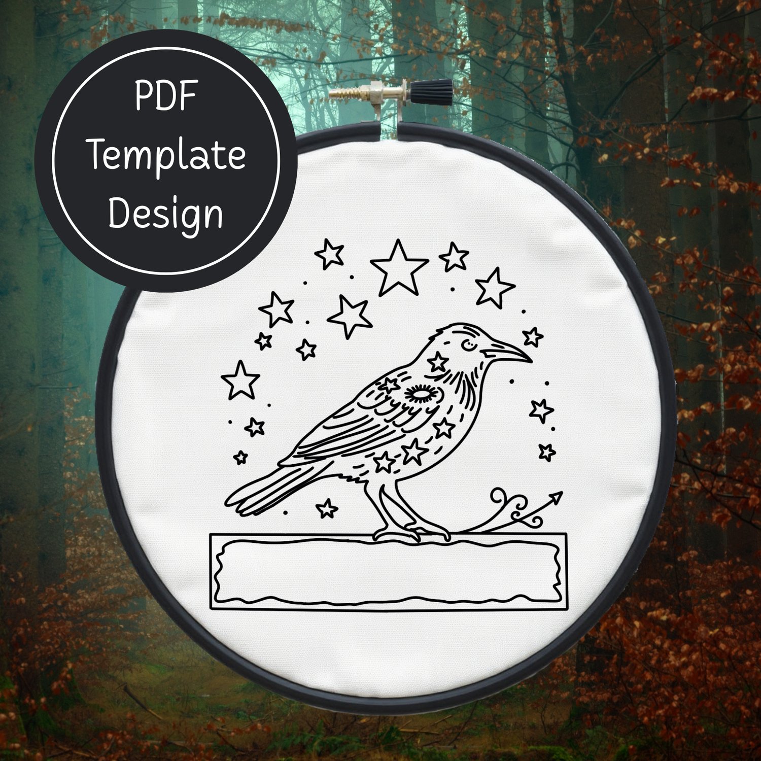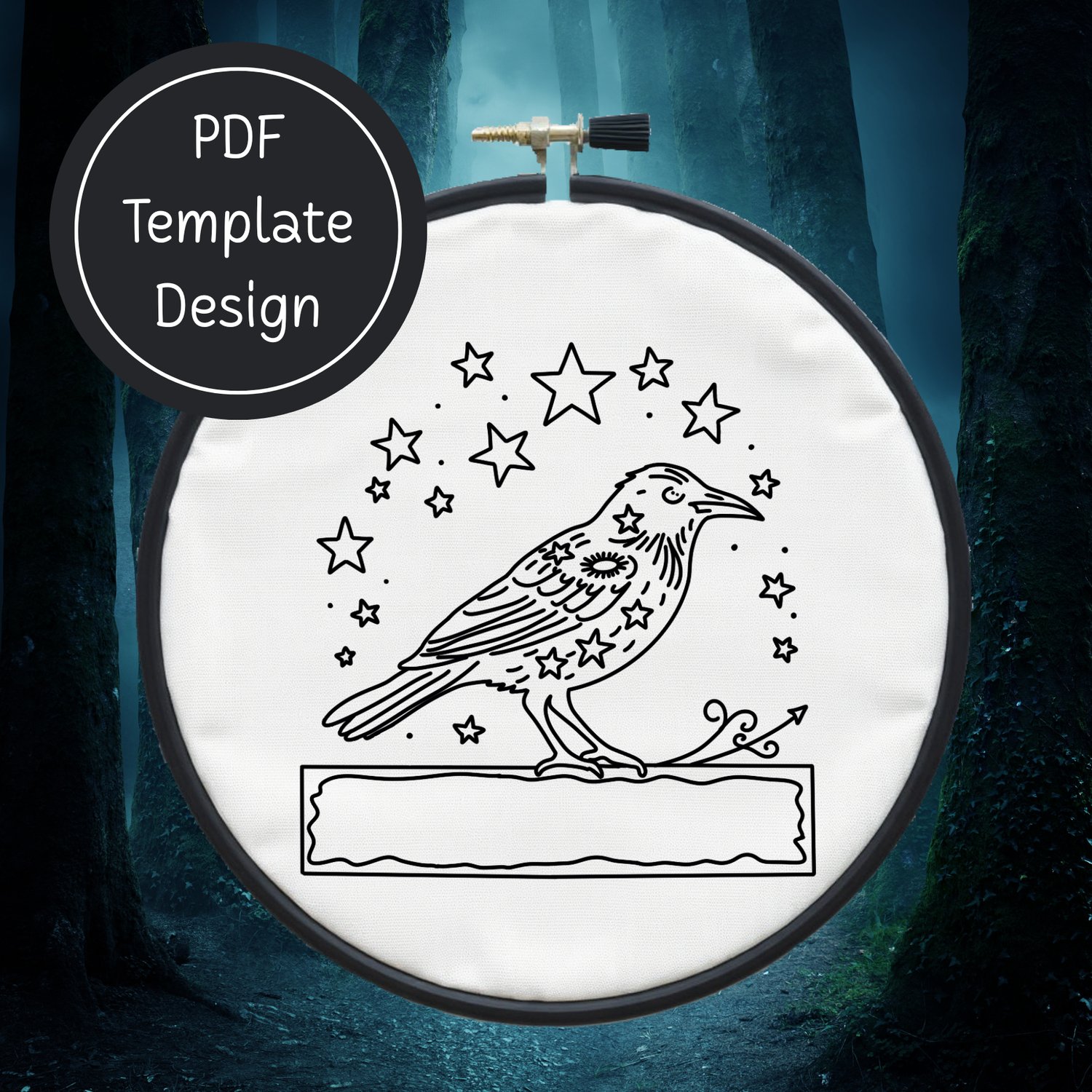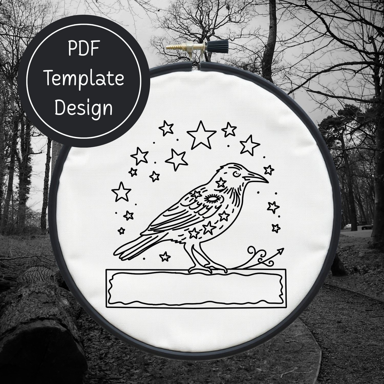 Crow & Stars Hand Embroidery Template PDF - DIY Bird Design For Hand Stitching - Instant Download