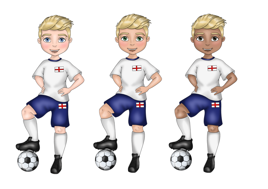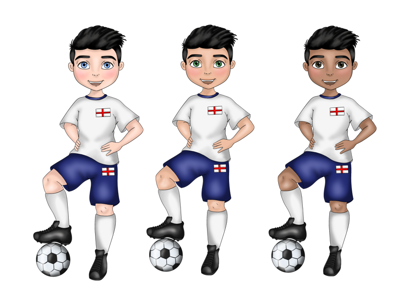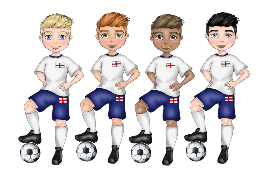 Beautiful personalised football polyester cushion featuring our England strip boy doll, choice of hair, skin and eye colours