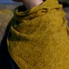 YARN: 2 skeins of Iolair Yarn Luing (70% Baby Alpaca, 20% Silk, 10% Cashmere; 400m/437yds/100g) or use any 4ply yarn as a substitute. The shawl is shown in colour “lichen yellow” (wulfenite-V7).