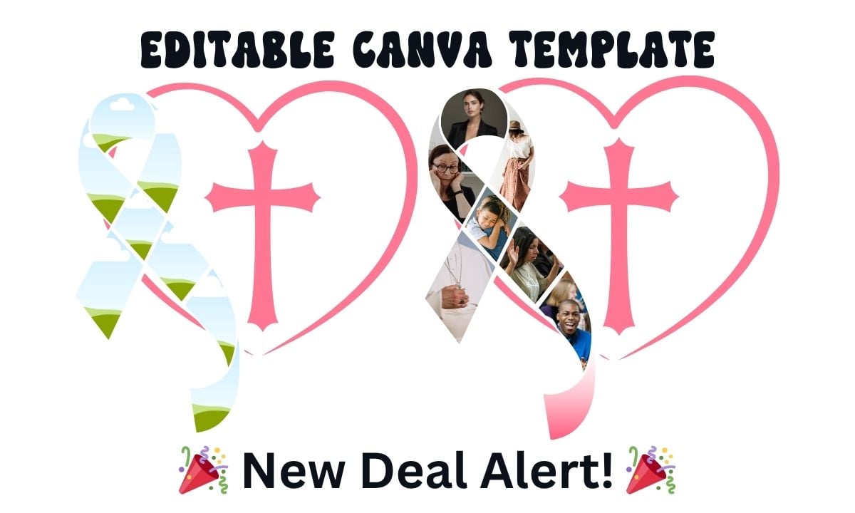 This beautifully designed Canva Frame Template merges the spirit of Christian faith and community support. It features a prominent pink cross centered within a large heart, paired with an awareness ribbon that doubles as a multi-segmented photo collage frame. This template is an essential tool for churches, non-profits, ministry leaders, and faith-based advocates who need to quickly produce visually touching content. Use it to share prayer requests, highlight community outreach, showcase missionary work, or promote faith-centered health and wellness support.