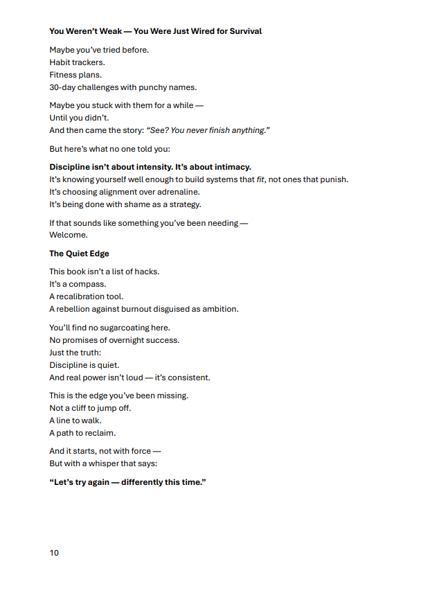 The Quiet Edge – Real Discipline Without the Drama: Build discipline that respects your limits—and actually lasts.