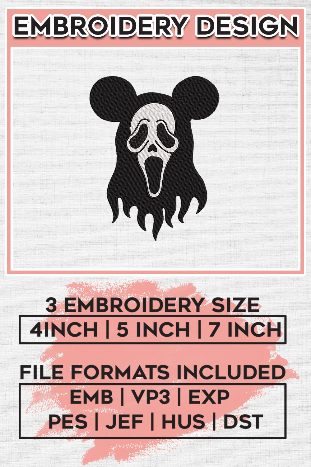 Mickey Mouse x Ghostface Embroidery Designs, Halloween Embroidery Files, Spooky Season Embroidery, Horror Character Machine Embroidery Design, Digital Download