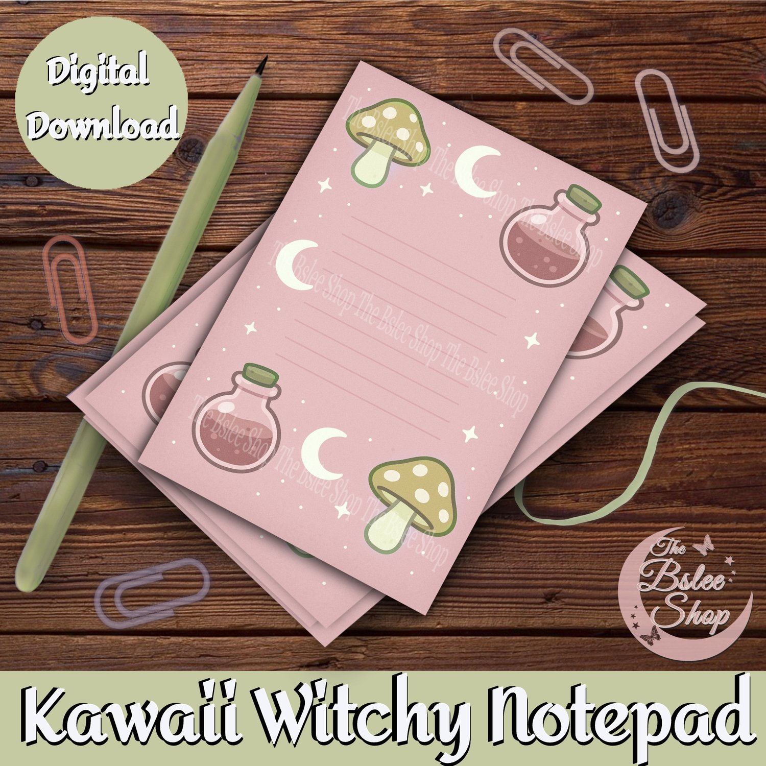 Printable Kawaii Witchy Potions Notepad, Kawaii Pink Pages, Magical Mushroom Stationery