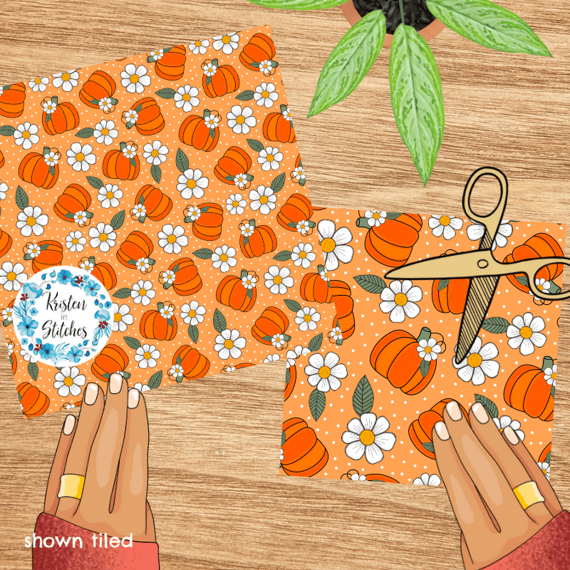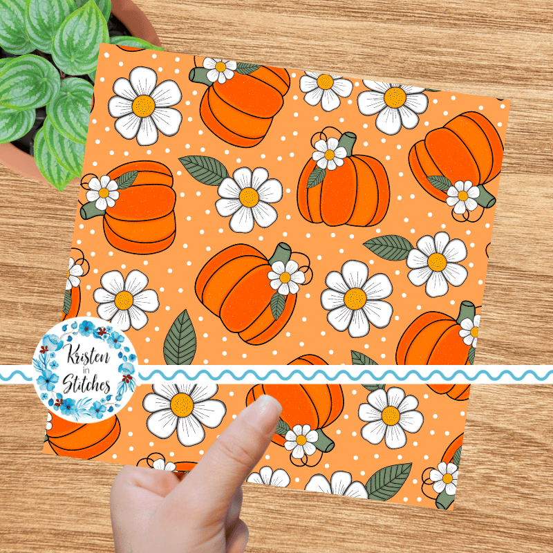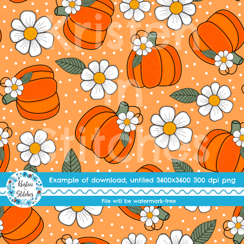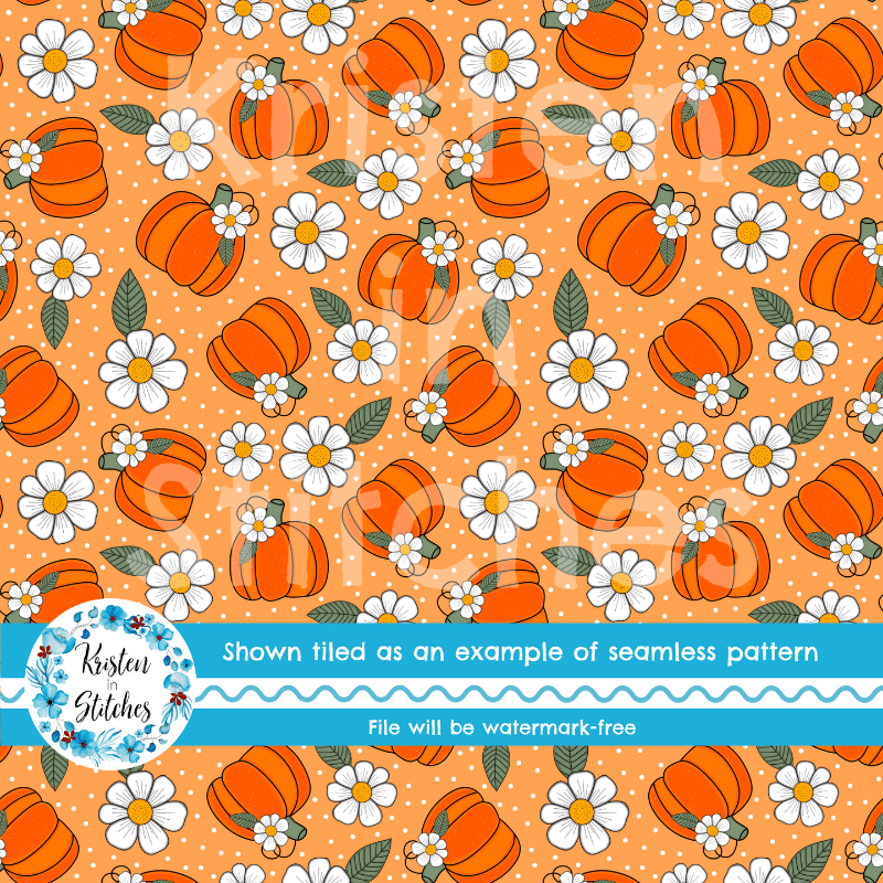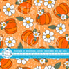 Little Pumpkin Halloween Daisy Flowers Seamless Pattern