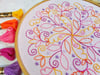 Mandala inspired embroidery pattern. The pattern is designed to be used as a kind of meditation. It uses just two stitches: back stitch and star stitch. Let the rhythm of working the stitches and the shapes relax you!