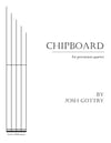 Originally composed for the Chandler Preparatory Academy Middle School Percussion Ensemble, Chipboard can be played with as few as four players or parts may be doubled, tripled, etc. for larger percussion ensembles. Standard wooden percussion instruments (i.e., wood blocks, temple blocks, log drums) are ideal for this piece, but the ensemble may instead choose to use found or created wooden instruments if desired. Care should be taken to select sticks or mallets that will create a full and warm sound from each instruments so the piece is not presented with a harsh or piercing sound quality. The quartet opens with a layered effect of offset two-note rhythmic groupings in the three higher wood instruments. As the lowest voice enters, the first time signature change appears and the ensemble presents its first unison statement. The high wood continues with an ostinato over which the other three voices dialogue before a return to the opening material, again in three. After a four-bar statement by the low wood, each additional part gradually joins in the repetition of this phrase, followed by an extended unison statement by the ensemble. Again, the original rhythmic idea returns, this time embellished with sixteenth notes, before the final coda which alternates between unison statements, layered rhythmic ideas, and a closing full ensemble crescendo.