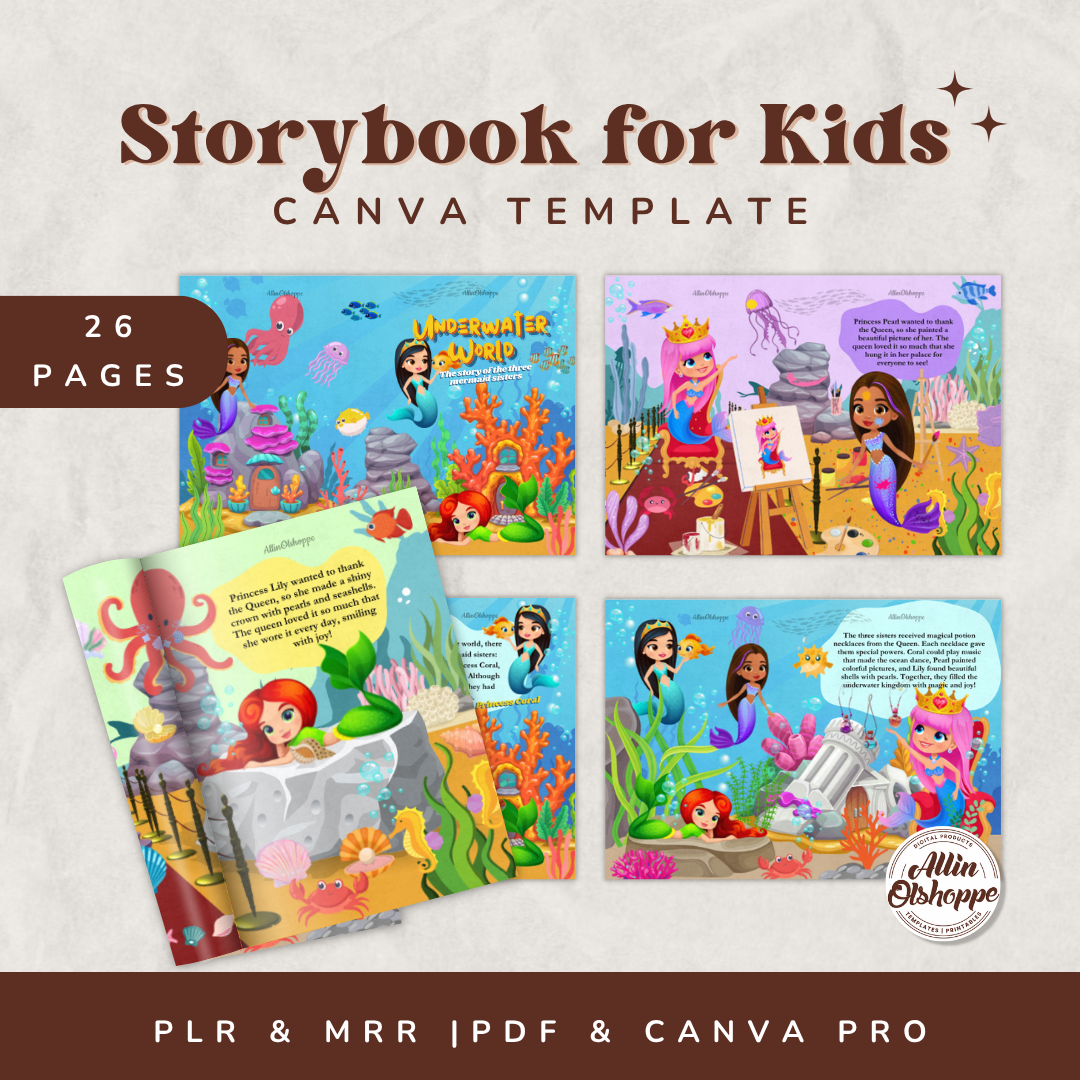 Kids Storybook Underwater World Mermaid Story | Canva Pro Editable | PLR