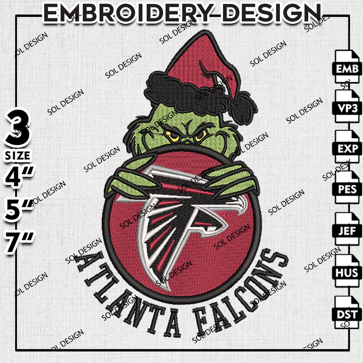 NFL Atlanta Falcons Team x Grinch Face Holding Ornament Embroidery Designs, Grinch Embroidery Files, NFL Falcons Football Team Logo Embroidery, Merry Christmas Machine Embroidery Design, Digital Download