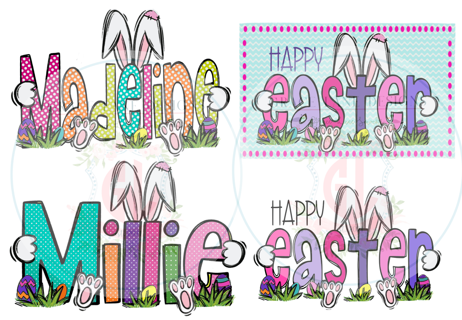 Custom Easter Bunny Name Frame Plate png Hand Drawn Procreate Digital Download With and without background
