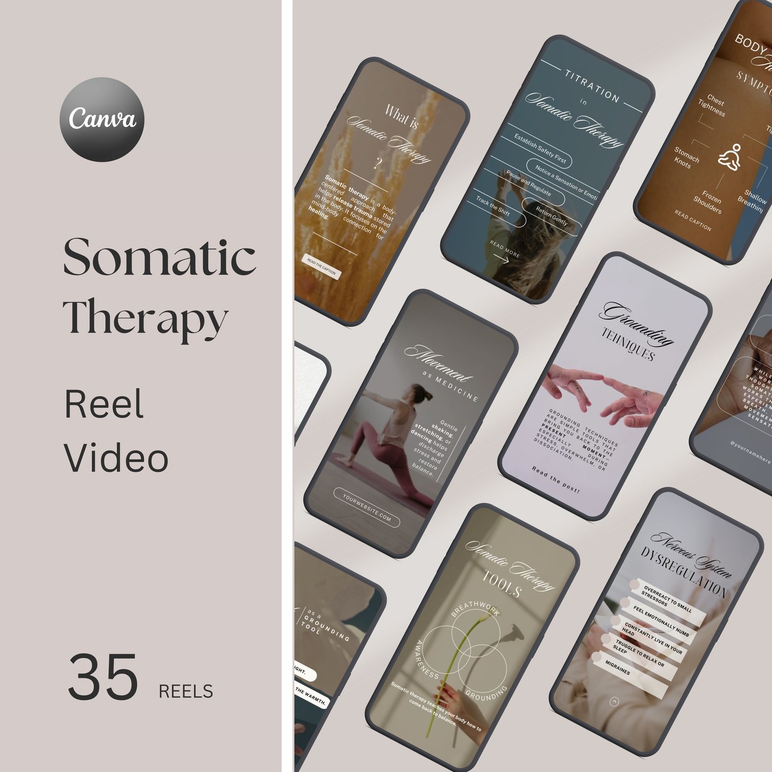 Somatic Therapy Instagram Reels Template | Nervous system Counselor Templates | Social media post | Holistic Coach | Mental Health Video