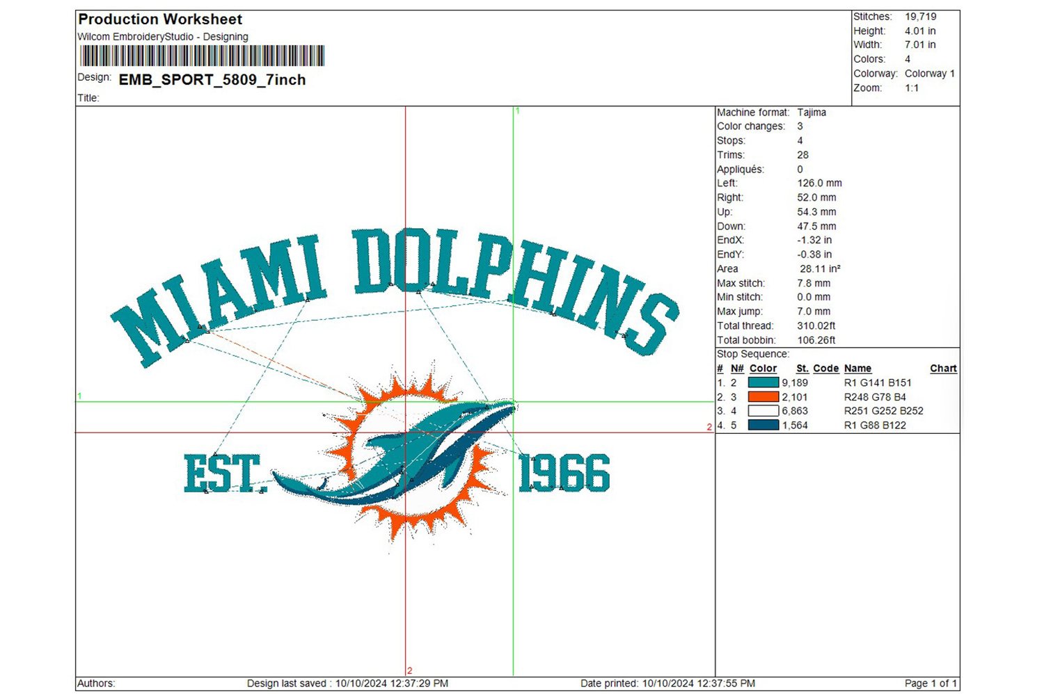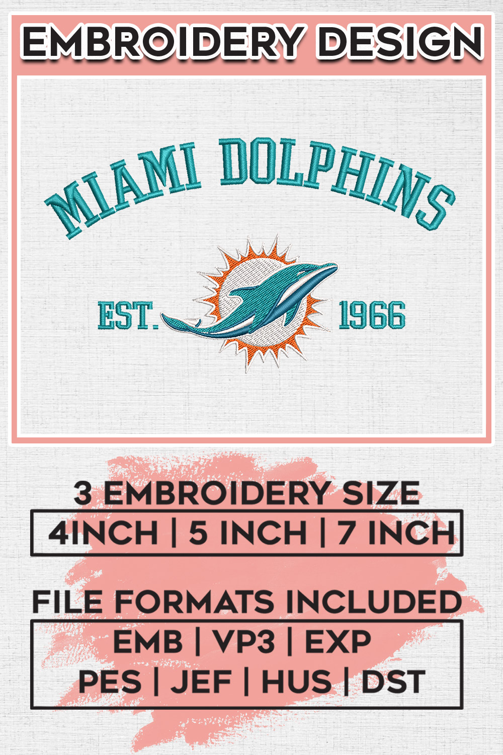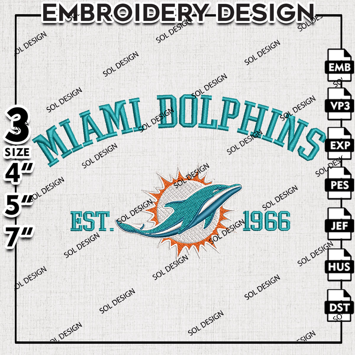 Miami Dolphins Est 1966 Embroidery Design Files, NFL Dolphins, NFL Logo Embroidery Files, NFL Miami Dolphins Machine Embroidery Design, Digital Downlo