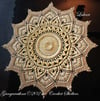 Pattern consists of 46 rounds and measures 18 inches, used around 600 yards of size 20 mercerised cotton thread with 1.75 mm steel hook.