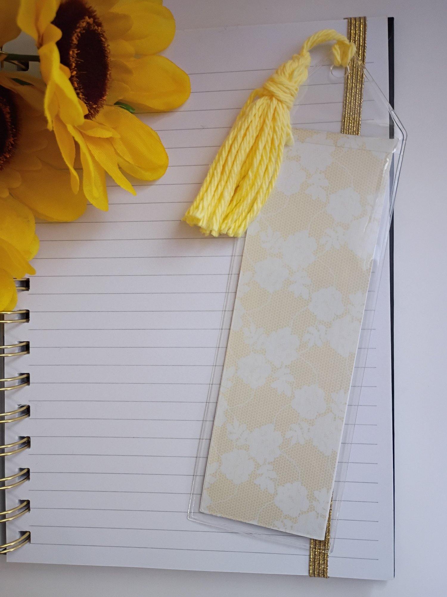 These bookmarks are placed in plastic protective sleeves, with handmade tassels attached.