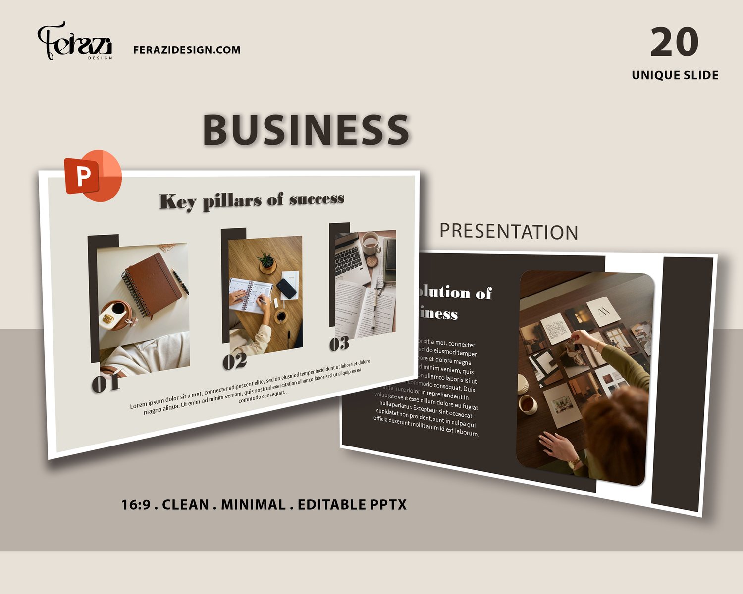 20 Clean Slides | 16:9 Format | Instant Download