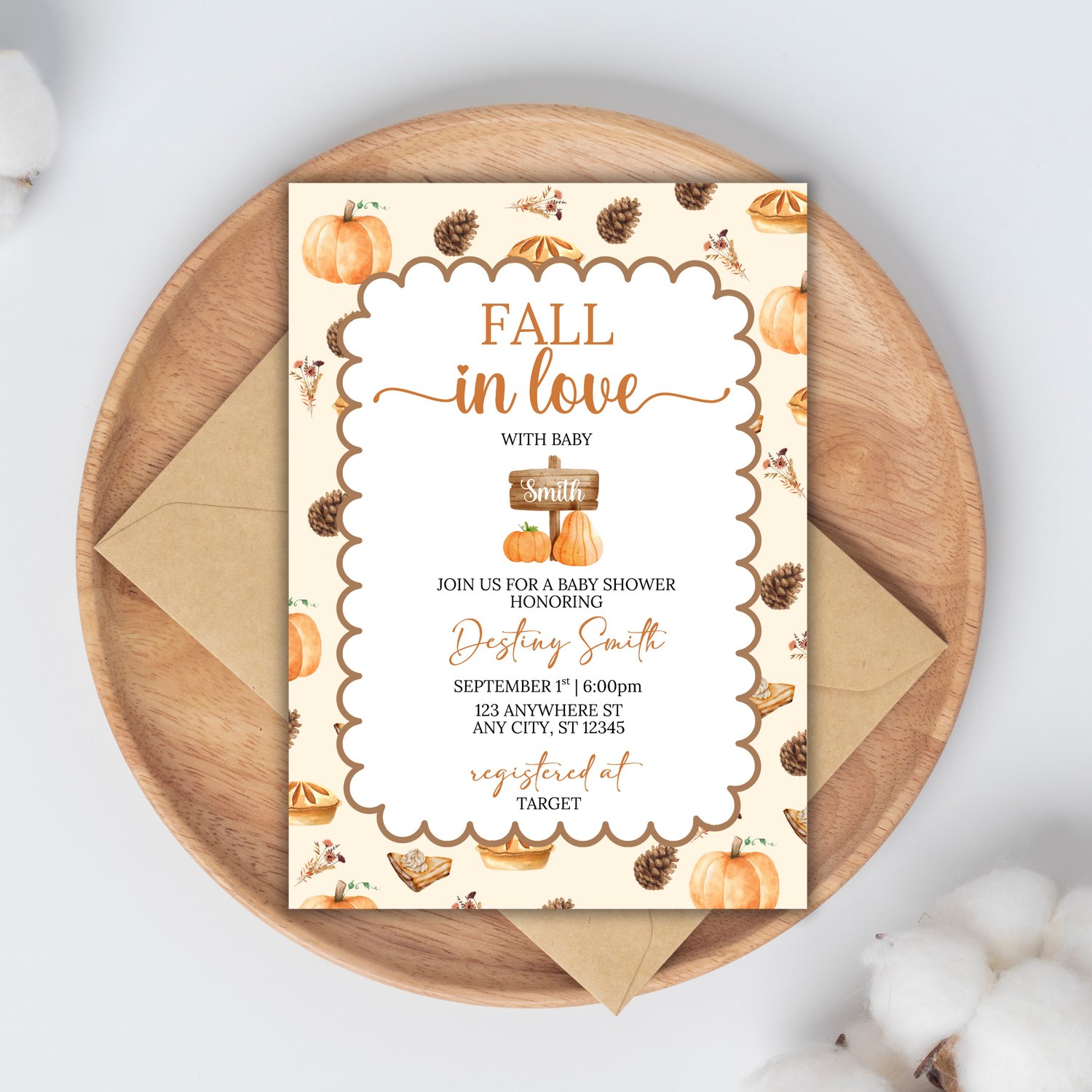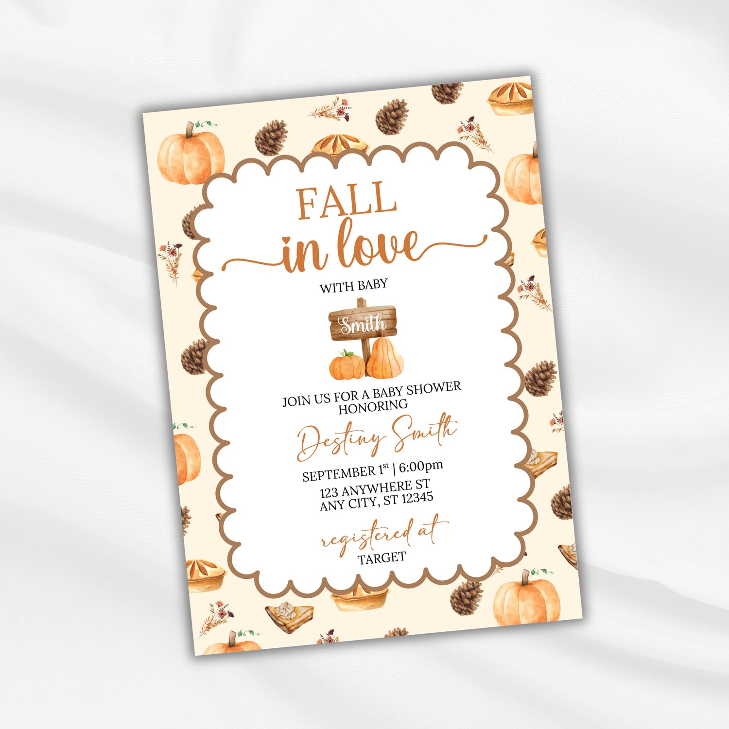 Fall in Love with Baby – Autumn Baby Shower Invitation | Editable Digital Download