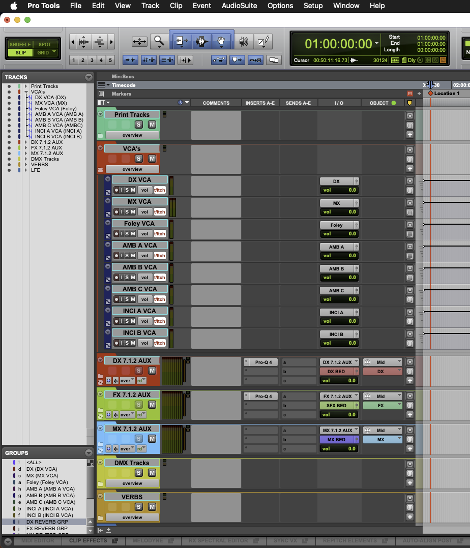 • ✅ Pre-configured VCA faders for efficient stem control (DX, FX, MX, Ambiances, Foley, Music)