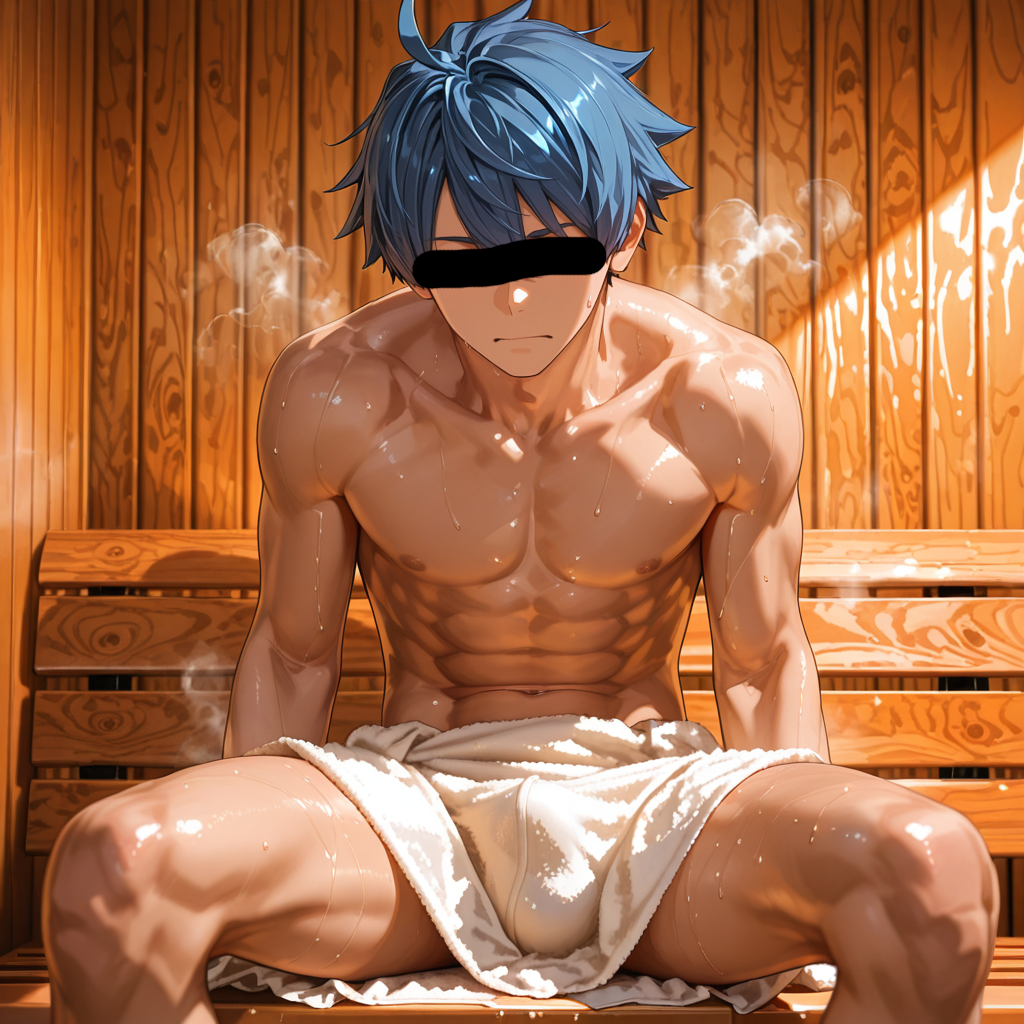 サウナで「整う」をテーマに、男らしいキャラクターの魅力を思い切って表現しました。