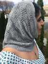 A rabi is a spring breeze which, while it brings the warmth, can still chill a person fooled by the brighter, sunny days. This wimple can be worn scrunched down or up around the face in the spring (or any other time) to give a bit of soft protection against such a breeze. Calling on the frequent use of birds and feathers in Persian art, the stitch pattern imitates ostrich plumes. Subtle shaping allows a closer or more loose fit, as desired. This is a great first project for laceweight yarn.