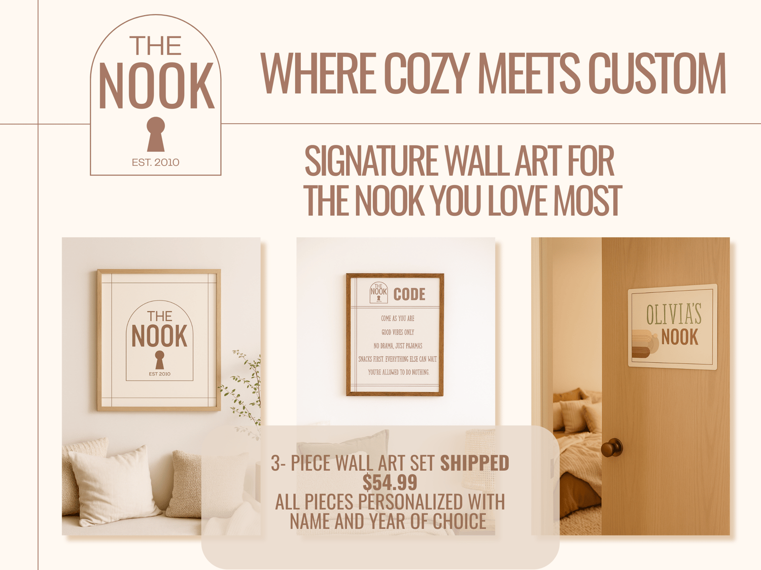 Bring cozy charm and personalized style to your little one’s space with The Nook Wall Art Set — a printed and shipped 3-piece collection inspired by our bestselling LB Mini Exclusive: The Nook Birthday Collection. With soft boho tones and custom name details, this set adds a warm, personal touch to birthday backdrops, bedroom walls, or a sweet nook of her very own.