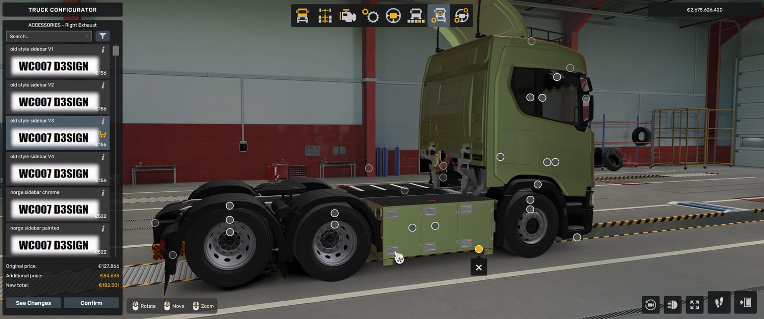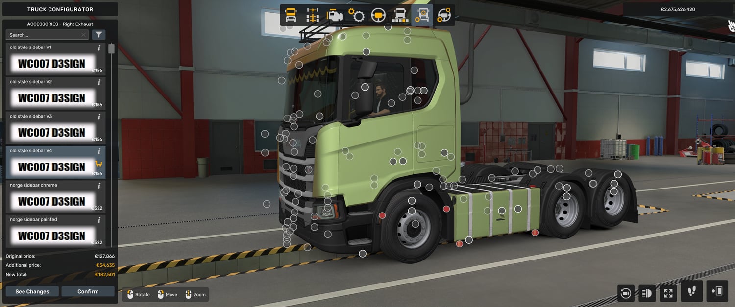 [right exhaust tuning part] Scania NG old style sidebars for old style sideskirts