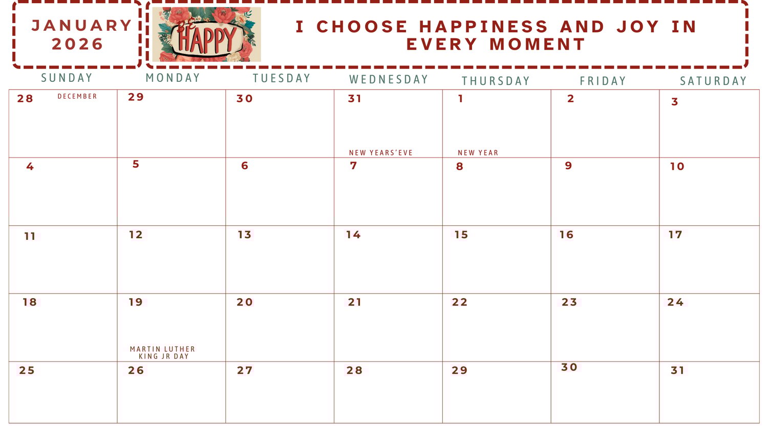 This calendar has a positive thought for each month that you can say to yourself everyday to help you feel better about yourself and bring happiness into your life.