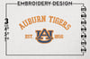 Auburn Tigers Est 1856 Logo Embroidery Designs, NCAA Auburn Tigers Team Embroidery, NCAA Team Logo, 3 sizes, Machine embroidery Files, Digital Download