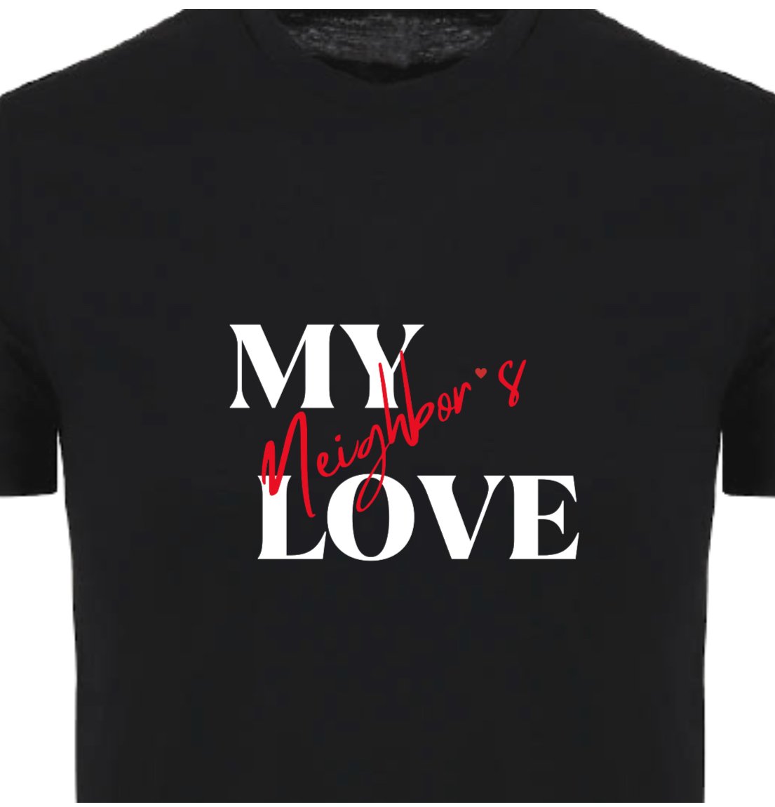 Show your support with our ultra-soft black tee, emblazoned with the inspiring words 'My Neighbor's Love.' Crafted from premium, breathable cotton, this shirt offers unmatched comfort while making a difference. Every purchase helps support families in need, spreading warmth and kindness in our communities. Wear your heart on your sleeve and be a part of something meaningful.