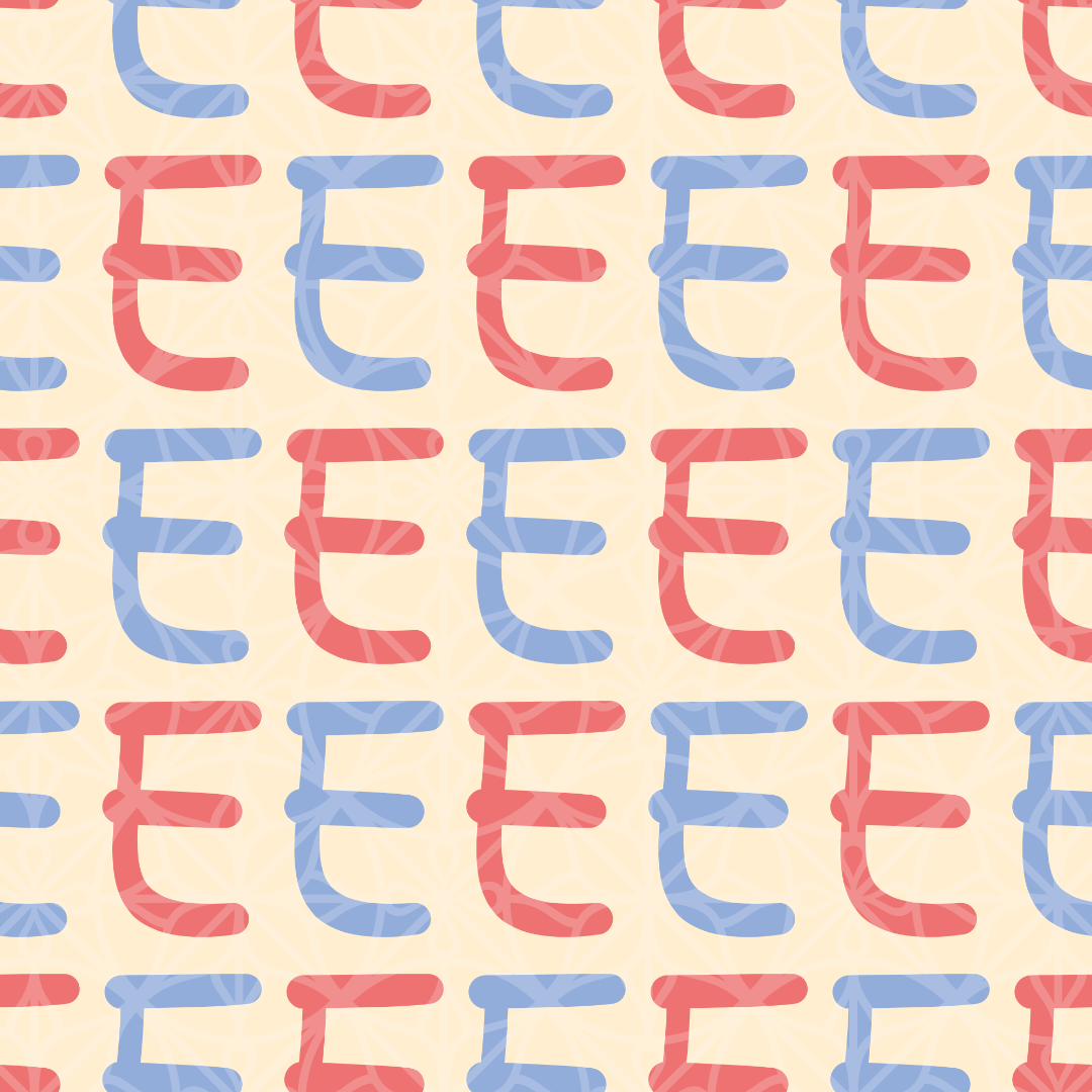 Upper case letter E vector repeat pattern. Hand-written typography seamless illustration background.