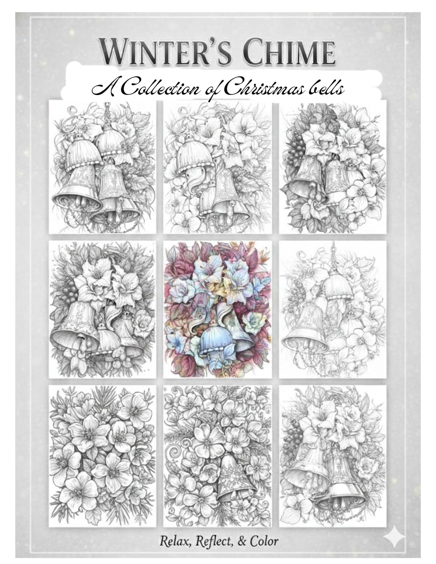 Elegant Cover Page: Featuring the title "Winter's Chime: A Greyscale Christmas Bells Collection.