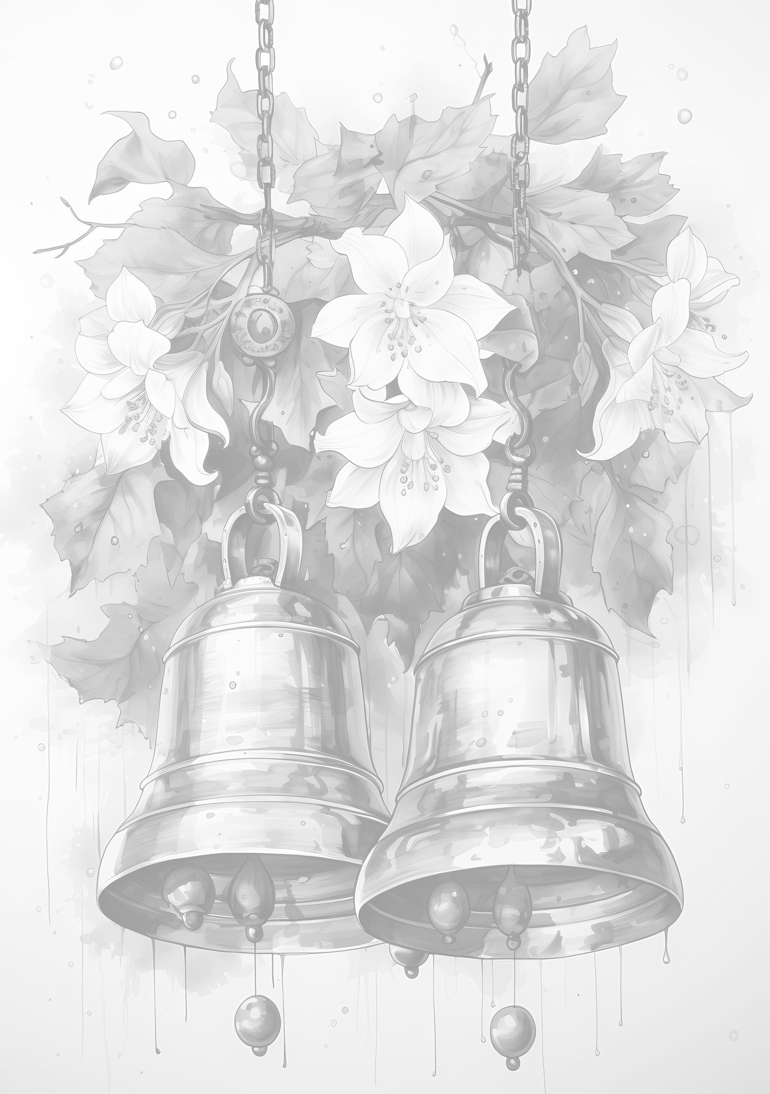 Ring in the holidays with the serene artistry of Winter's Chime, a stunning collection of Greyscale Christmas Bells coloring pages. Unlike traditional line art, greyscale coloring uses varying shades of grey to provide depth, shading, and texture, turning your coloring session into a masterpiece ready for watercolor, pencils, or markers!