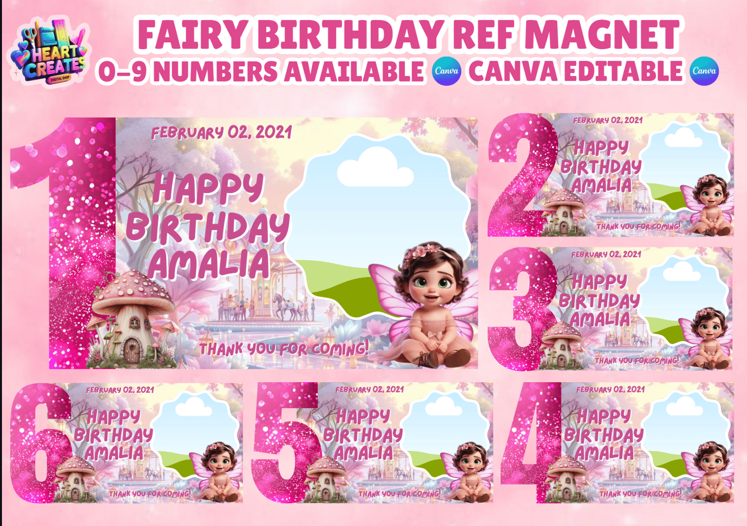 Celebrate your special day with our Fairy Birthday Ref Magnet! This beautiful digital magnet features a cute fairy design and is perfect for birthday parties. It is fully editable using Canva, so you can easily change the name, date, or message to personalize it. The magnet includes numbers from 0 to 9, so you can customize the age to match your birthday girl. Bright, fun, and easy to edit, this Fairy Birthday Ref Magnet is a wonderful addition to any birthday celebration!