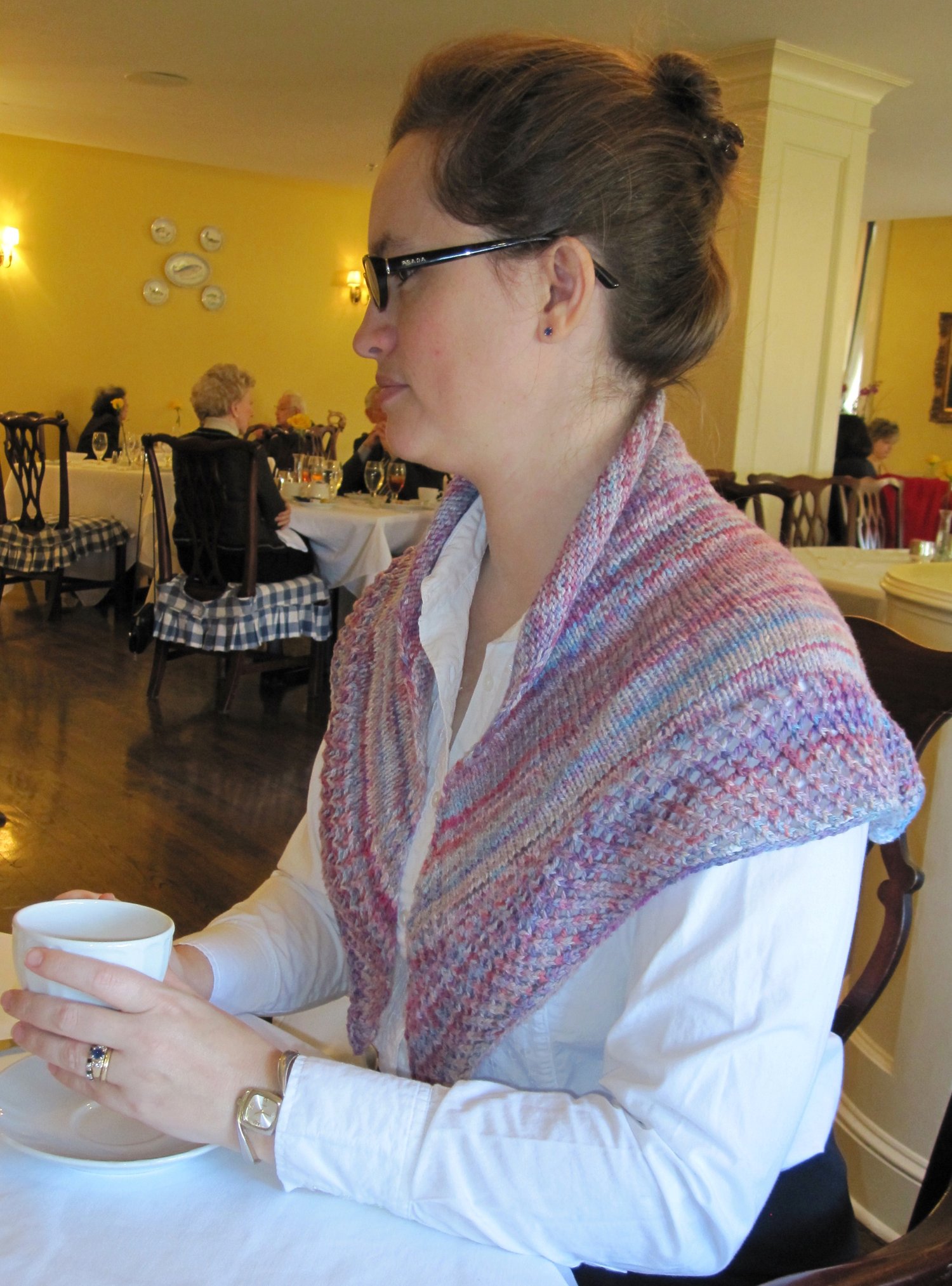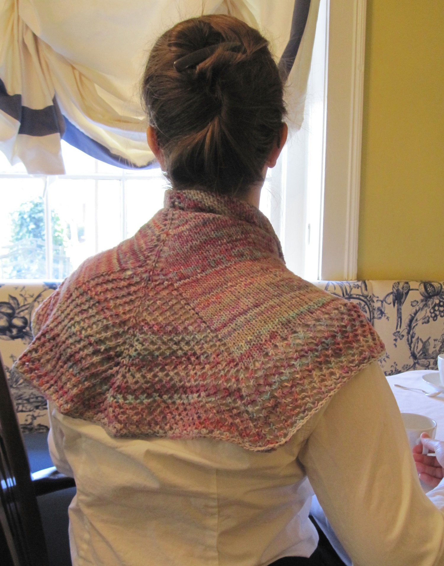 Oh what a tangled story some shawls tell. This one was inspired by several of my loves coming together at once. In this case a reference to the taxi driver in Do Androids Dream of Electric Sheep?, combined with Isadora Duncan’s love of shawls and drapes in her dancing led to the creation of this very stylized shawlette.