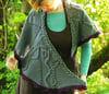 a modular, rounded, cabled shawl which can be more or less intricate to suite your style