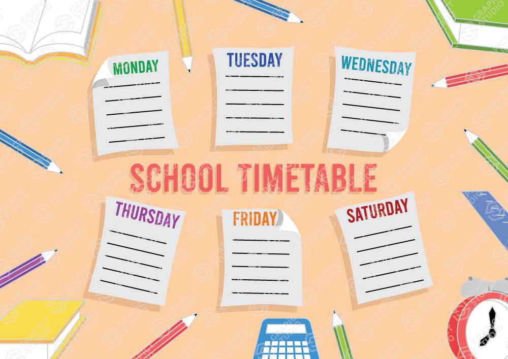 DIY print template school timetable. Print a template of school timetable at home, impress your children and make their day cheerful. Back to school no more bored. A4 paper size.
