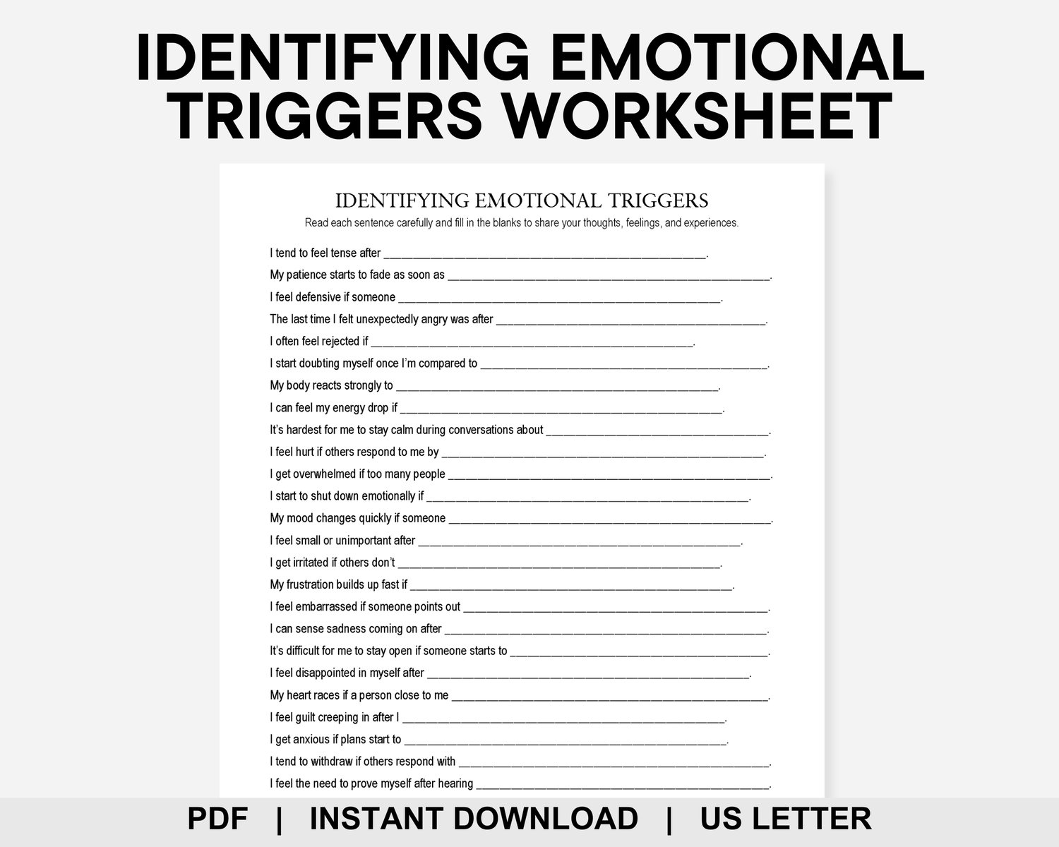 Identifying Emotional Triggers Worksheet, Emotional Processing, Emotional Regulation, Coping Skills, Self Awareness, Self Regulation