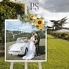 Adding a white border to your welcome sign helps direct attention to your beautiful pre-wedding photo and impresses your guests on arrival. All text can be moved to accommodate the composition of your image.