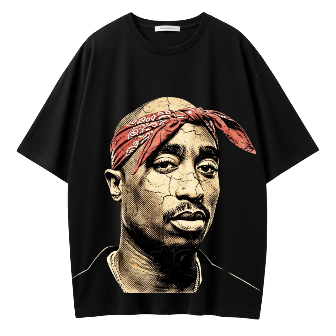 Tupac Shakur Tribute Tee — Pay homage to a hip-hop icon with this bold tribute to Tupac Shakur. Featuring a gritty, vintage-style portrait that captures his intensity and revolutionary spirit, this tee blends streetwear edge with timeless cultural influence. Crafted from soft, durable cotton, it pairs perfectly with joggers or layered streetwear for a look that’s fearless, authentic, and unforgettable.