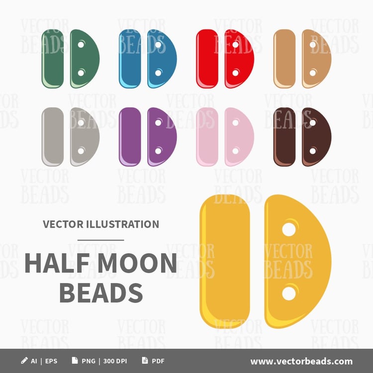 Vector Clipart Pack of Two-hole Baroque Cabochon Beads