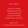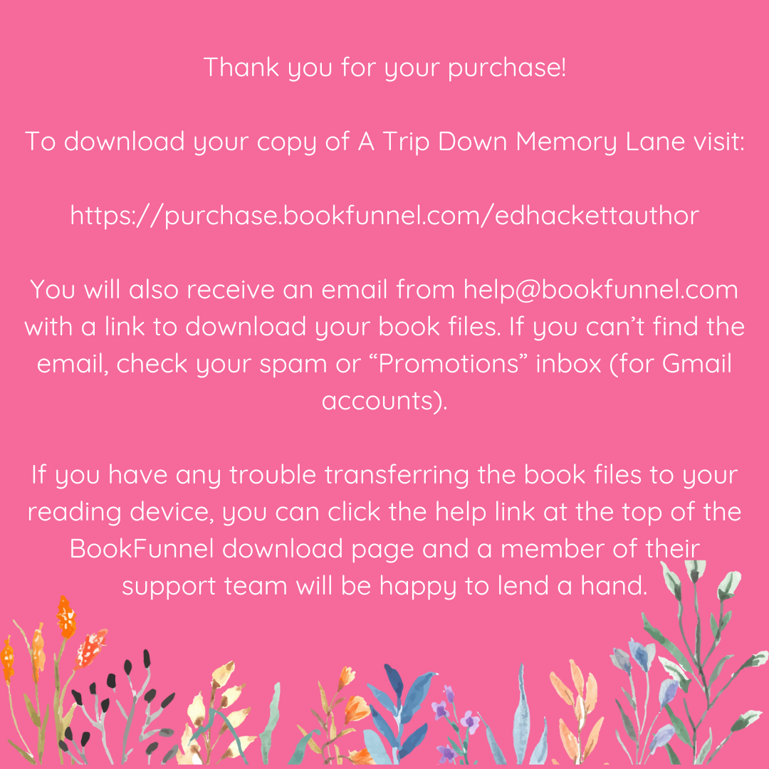 If you enjoy closed-door romance, personal growth, and second chances, you’ll love E.D. Hackett’s A TRIP DOWN MEMORY LANE.