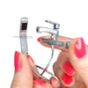 This miniature set features a bathtub, a faucet and a handheld shower head with a working slide bar.