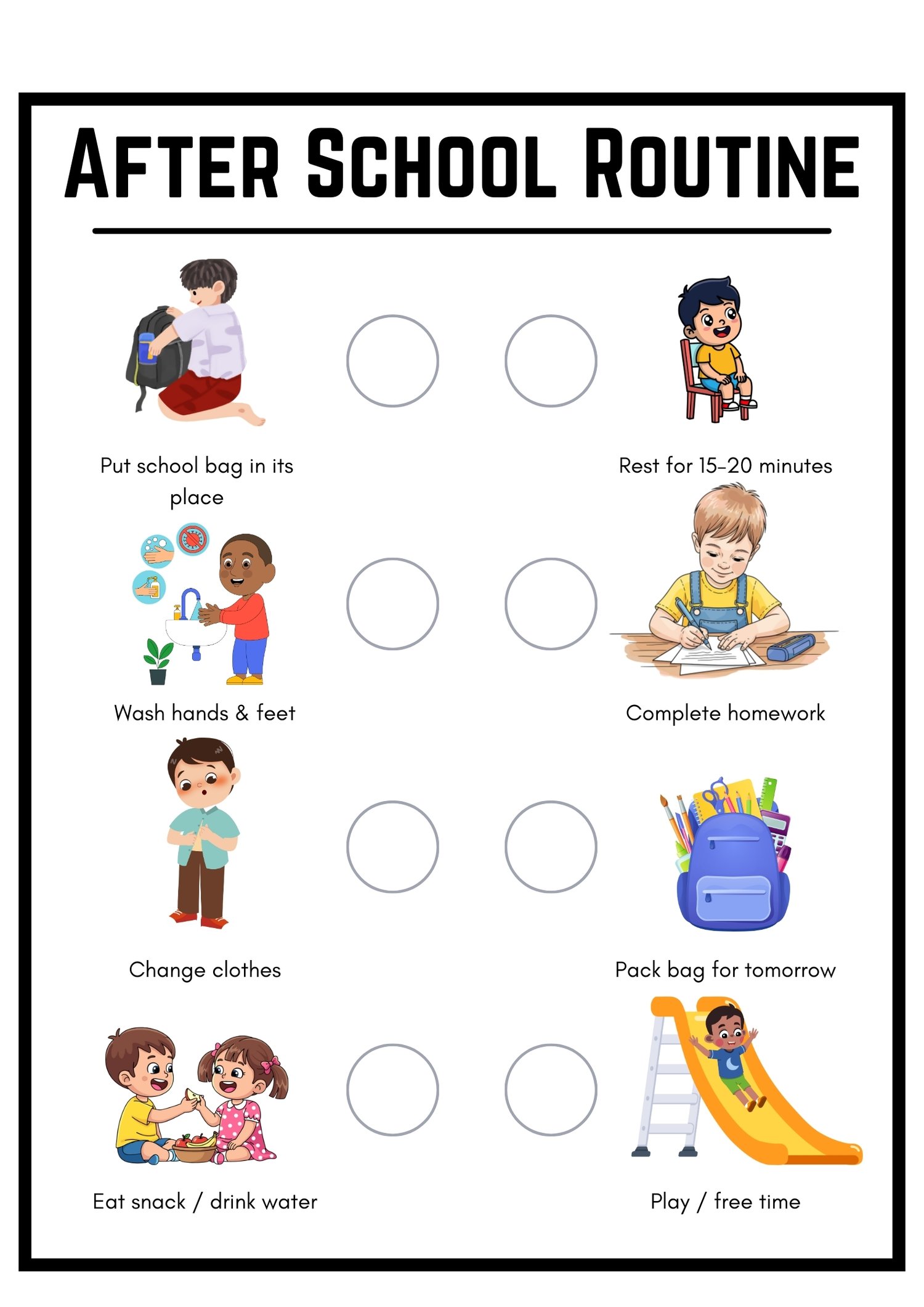 📋 Page 2: After School Routine – Smooth transitions from school to home activities