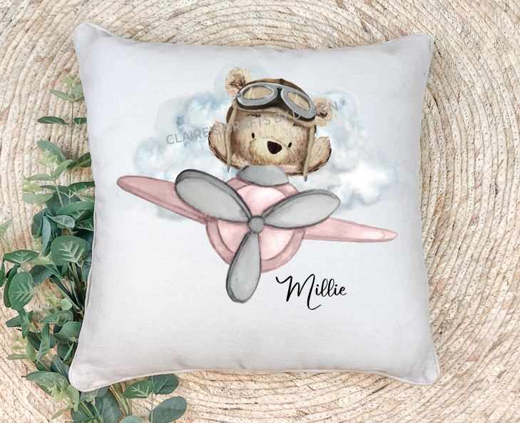 BEAR GIRL / BOY AEROPLANE CUSHION COVER