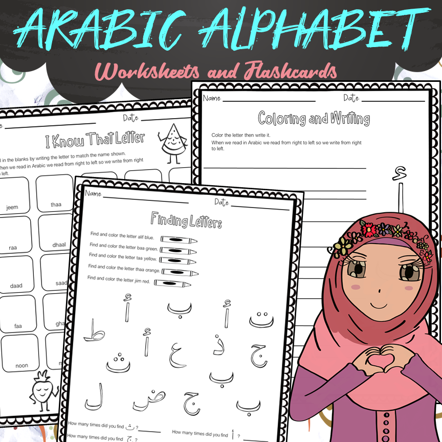 This printable set comes in a PDF file that will allow your students -who are new to the Arabic language- learn to write and read each letter. This set of sheets includes writing and tracing practice for all 28 letters in the Arabic alphabet. Includes practice for the name of each letter along with identification of each letter when among a group. Includes a chart to show how the letters look when used isolated, initially, in the middle, and end of words. Includes 28 flashcards to quiz the students on what letter is being shown. Total of 78 pages including the answer key.