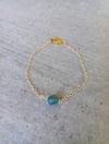 Bracelet fin monté sur chaîne dorée, orné d’une pierre centrale en sodalite. Un bijou à l’élégance sobre qui allie clarté d’esprit et expression profonde. Parfait pour celles qui avancent avec vérité.